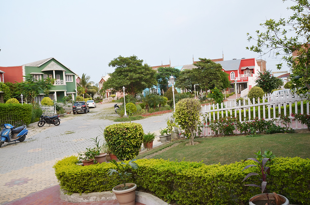 Raimbow 1 was the first independant project of our unit.It was a very big project back then.A 10000sq meter visualisation was not an easy task.But the ambience is at its full bloom here.Beautifully carved artistic houses and a complementary utility is at its high.A huge space for greenery individually and a big grewn meadows for peace and serenity..A big central park equipped with benches and a beautuful green cover to look out for.The 25' feet wide roads being laden with grossly beautified cemented tiling provides you much respite from dust and trash.